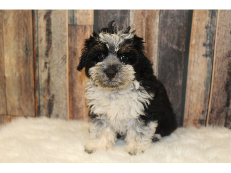 Aussiepoo DOG Female Black / White 16436 Petland Racine, Wisconsin Adopted